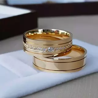 Modelo: Retas polidas com dois canais no centro 15 zircônias cravejadas na metade do aro feminina